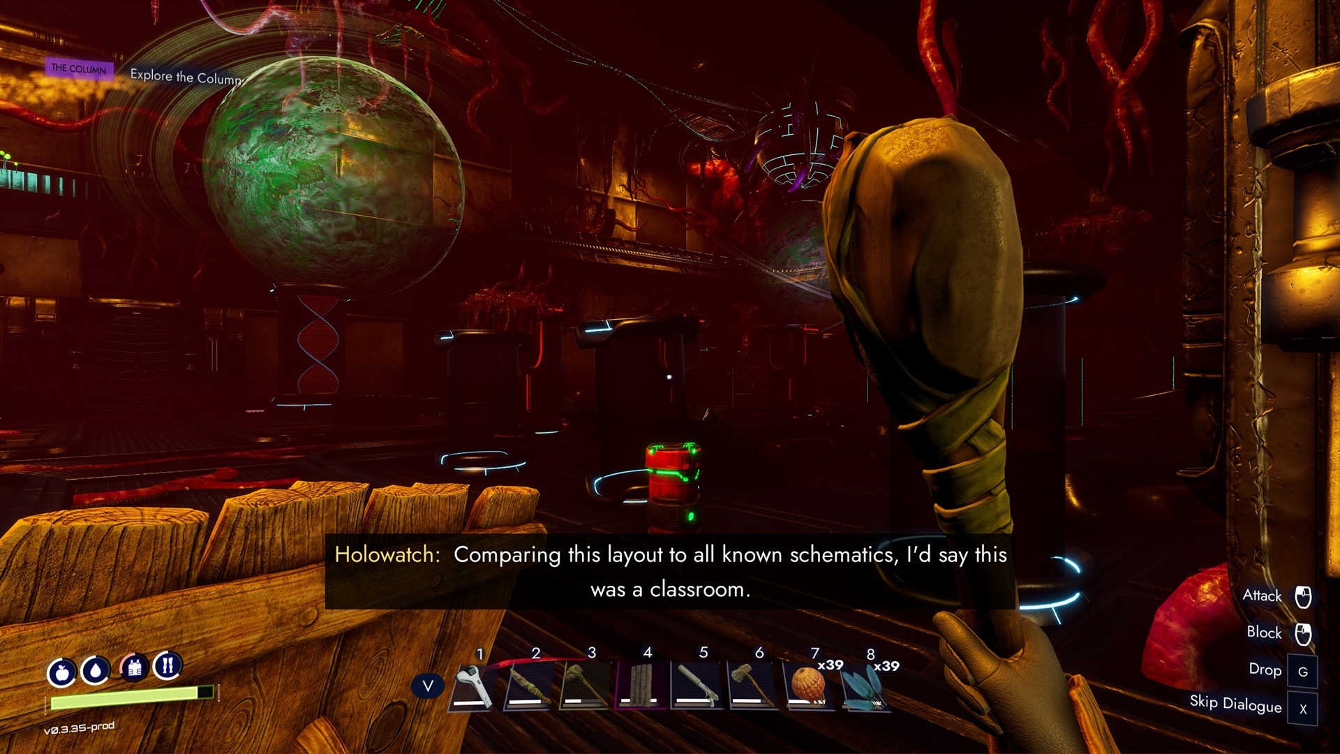 Wir werden folgend auf die Erkundung einer Kolonie beordert. Am Eingang angekommen, zeigt uns Blind Descent, was wir tunlichst ausgerüstet haben sollten, um uns das Leben im „Dungeon“ einfach zu machen. Darin entdecken wir neue Gegner und dadurch auch neue Materialien. Das Gameplay ändert sich hier von Survival, hin zu starkem Fokus auf Kämpfe und kleineren Gegenstandsrätseln. Das Ganze sorgt für ordentlich Abwechslung – sehr schön.