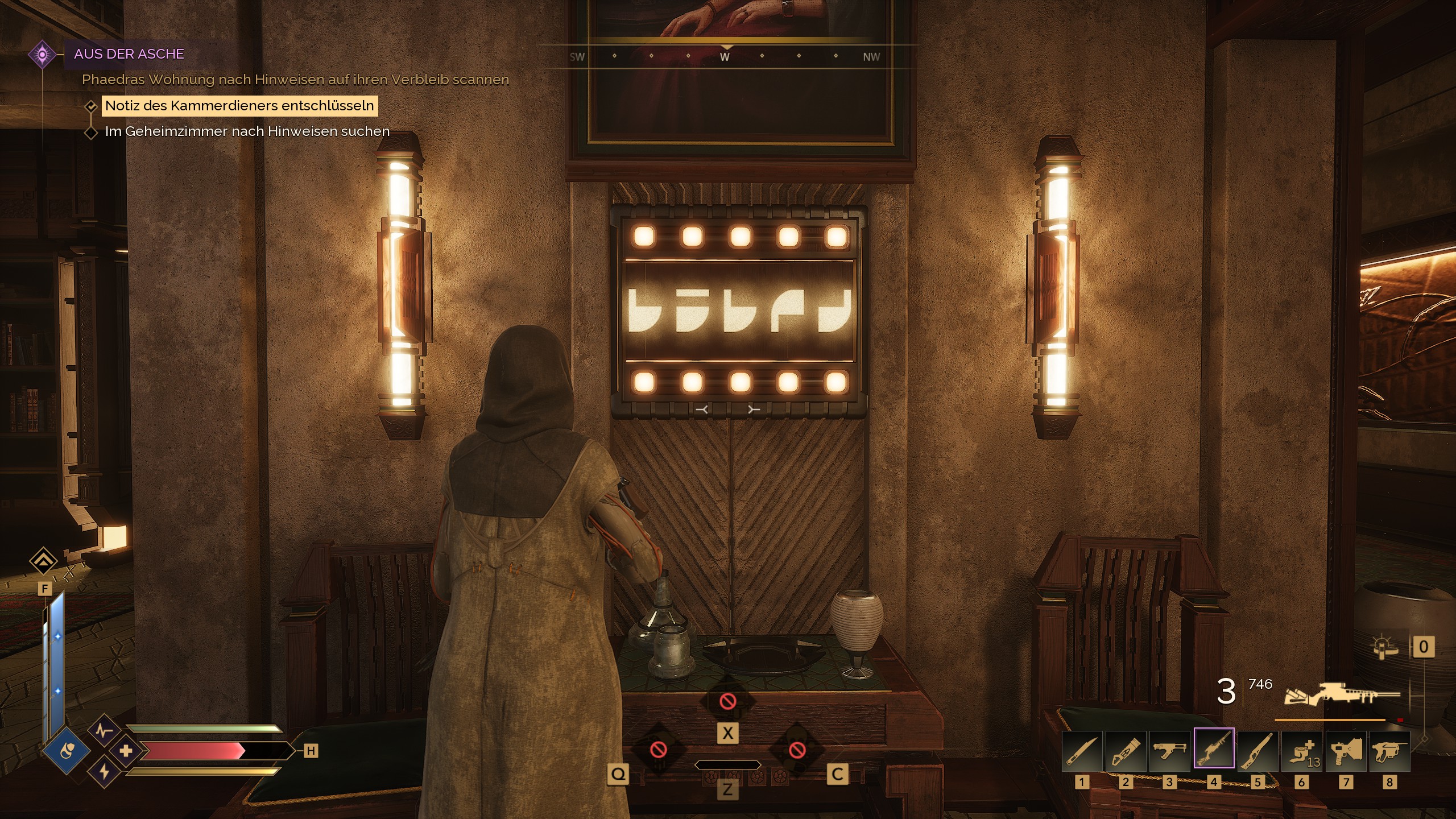 Aus der Asche – Phaedras Wohnung – Notiz des Kammerdieners entschlüsseln: