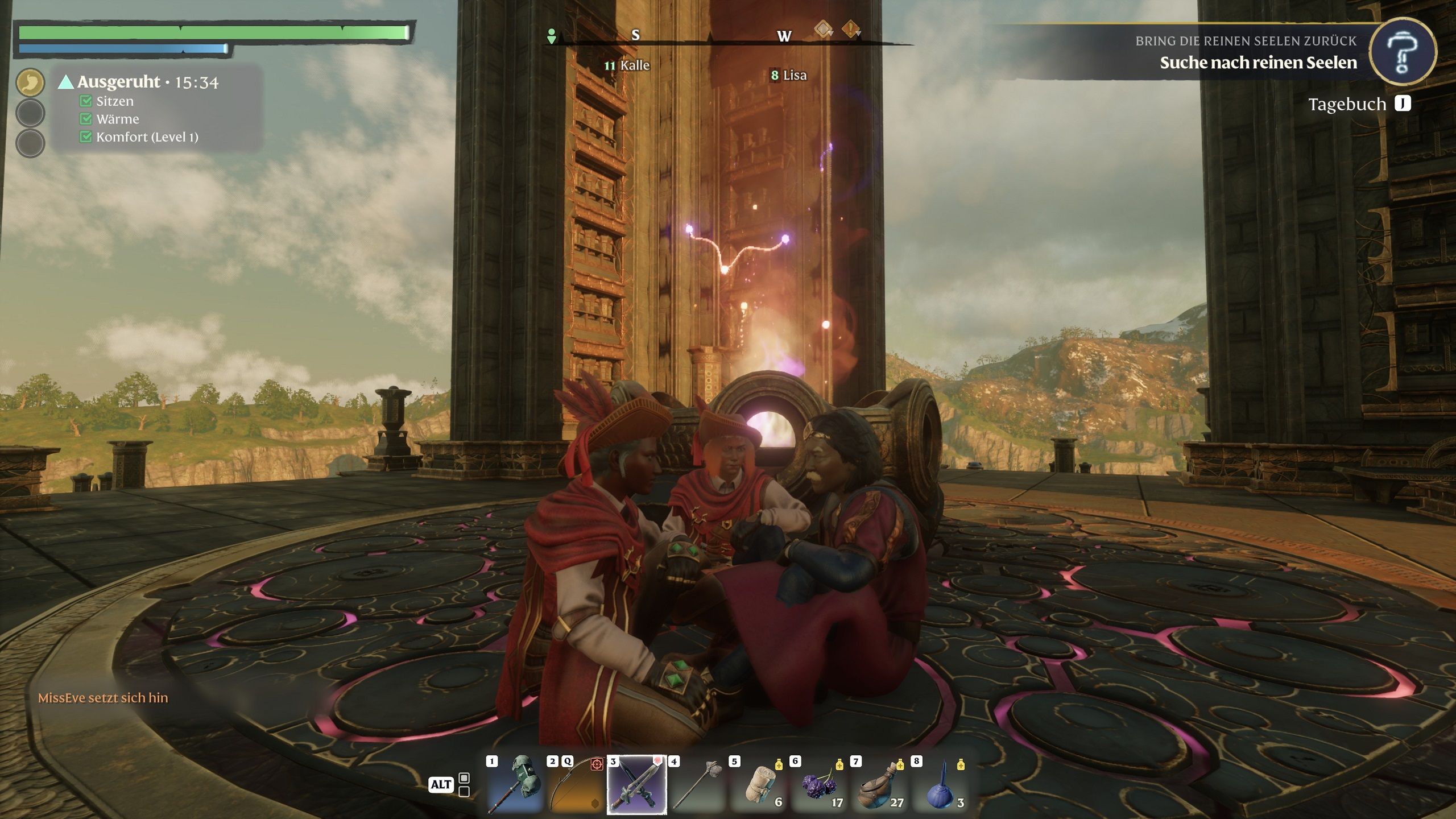 Turm erklommen - Sitzkreis gebildet - die Ruhe genießen - Enshrouded.
