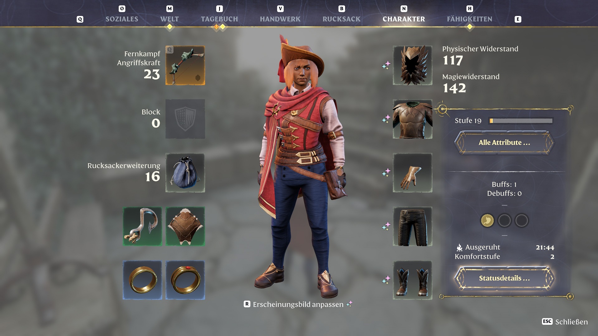 Hier seht ihr den Charakterbildschirm von Enshrouded.