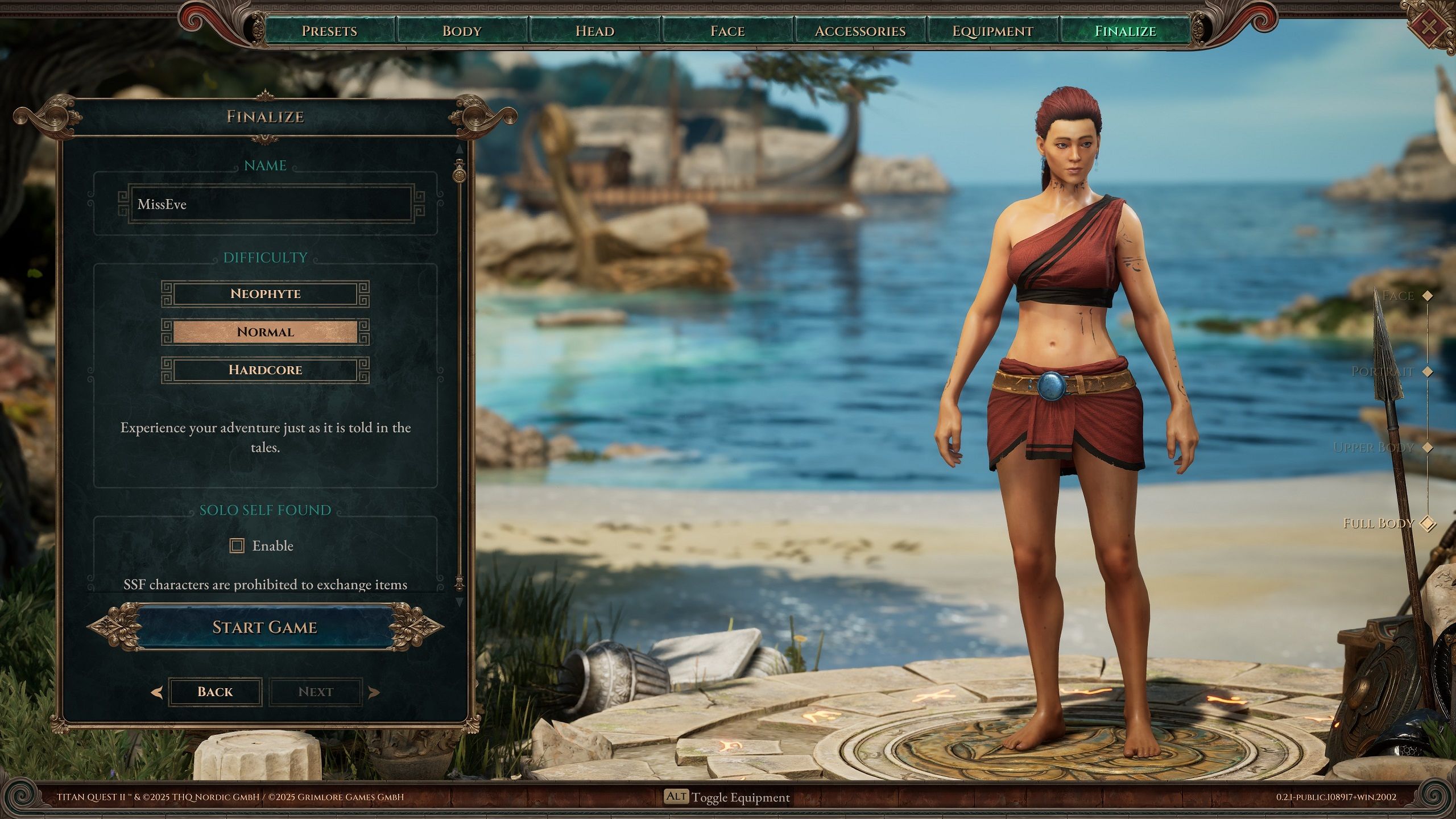Bevor es jedoch soweit ist, steht die neu hinzugefügte Charaktererstellung an. Für uns springt natürlich unsere beliebte Miss Eve in die göttliche Schlacht. Ebenfalls mit dabei, die Option den Helm auszublenden – wundervoll. Spielbar sind aktuell der Prologe und die beiden ersten Story-Akte.